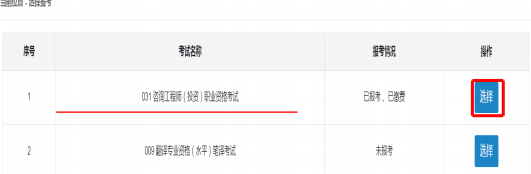 2.登陆到个人账户后,找到“咨询工程师(投资)职业资格考试”。